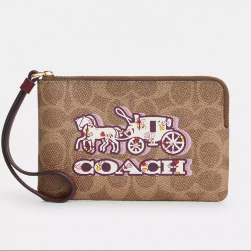 • NWT Coach Corner Zip Wristlet In Signature Canvas With Horse And Carriage Print