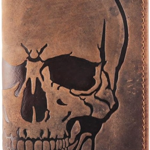 Men’s RFID Vintage Look Genuine Leather Long Bifold Wallet Checkbook Wallets,buffalo wax leather,classic brown skull,240-120$10.00 -