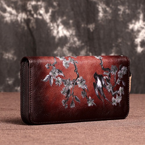 Women’s Leather Mid-length Clutch Handmade Embossed Retro Ladies Wallets