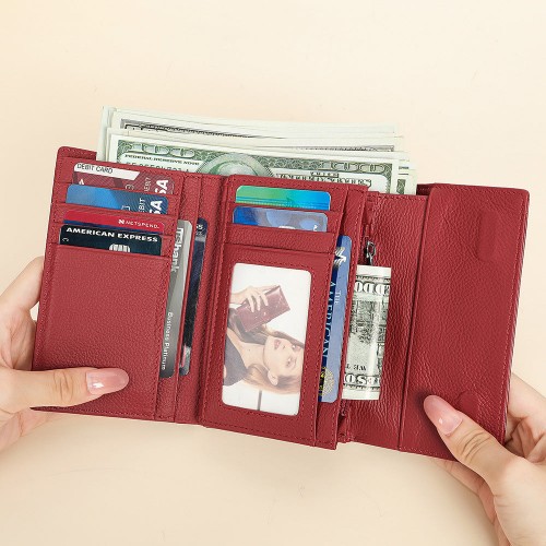 Women’s Leather Folding Fashion First Layer Short Ladies Wallets