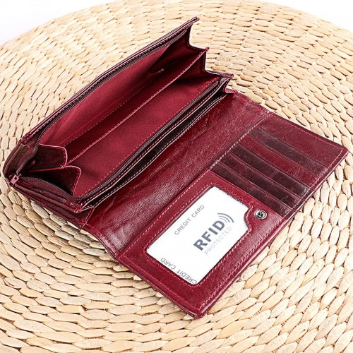 Women’s Oil Wax Skin Long Genuine Leather Fashion Ladies Wallets