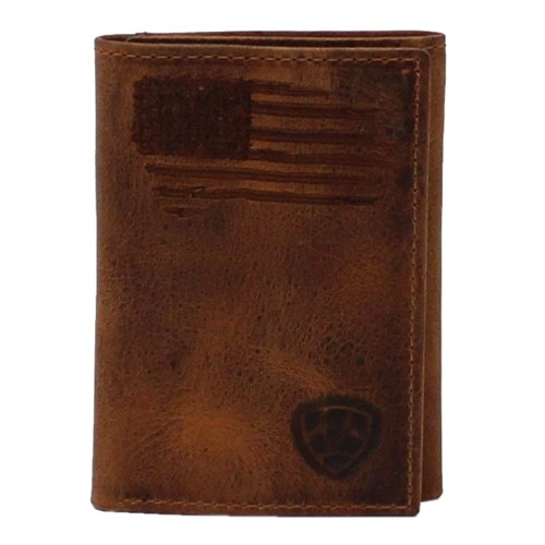 Ariat Men’s Distressed Brown USA Flag Patch Trifold Wallet