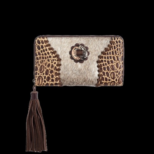 Ariat Large Brown Croco Floral Bifold Wallet A3553002