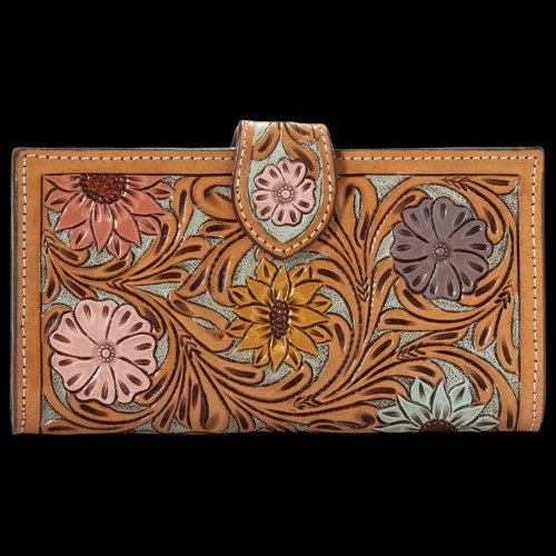 Ariat Ladies Hand Tooled Sunflower & Daisy Leather Wallet A770016597