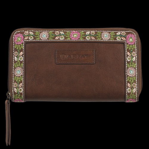 Ariat Ladies Addison Floral Embroidered Brown Leather Wallet A770011102