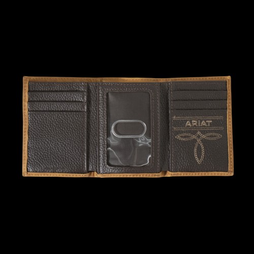 Ariat Men’s Basket Weave Sunburst Embossing Brown Wallet A3553402
