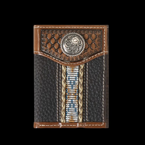Ariat Men’s Brown Braided Trim Trifold Wallet A35541282
