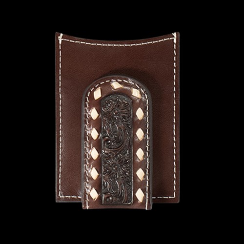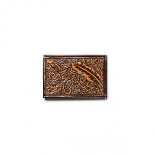 Ariat Men’s Brown Floral Embossed Money Clip Wallet A3558302