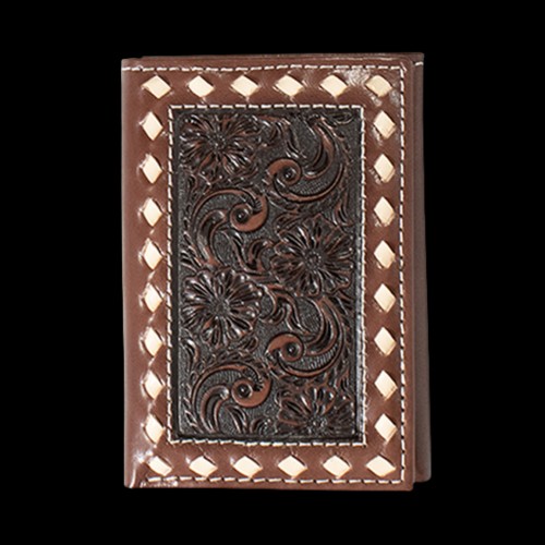 Ariat Men’s Brown Floral Embossed Trifold Leather Wallet A3558202