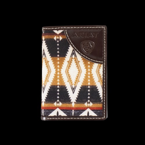 Ariat Men’s Brown Southwestern Fabric Trifold Wallet A3559502