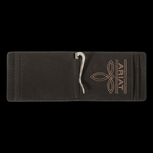 Ariat Men’s Brown Money Clip Embossed Scrolling Bifold Wallet A3561544