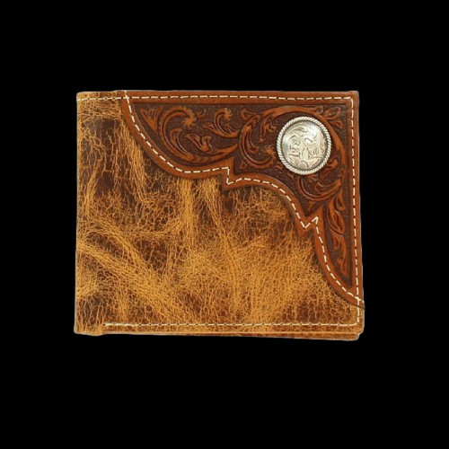 Ariat Men’s Distressed Brown Tooled Overlay Bifold Wallet A3532408