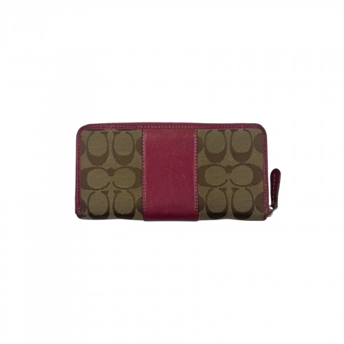 COACH KHAKI & RED SIGNATURE LONG WALLET