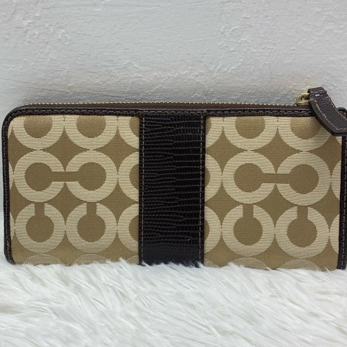 COACH Julia Khaki Brown Op Art Slim Zip Wallet
