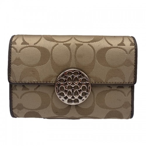 COACH KHAKI SIGNATURE GOLD ACCENT ZIP WALLET