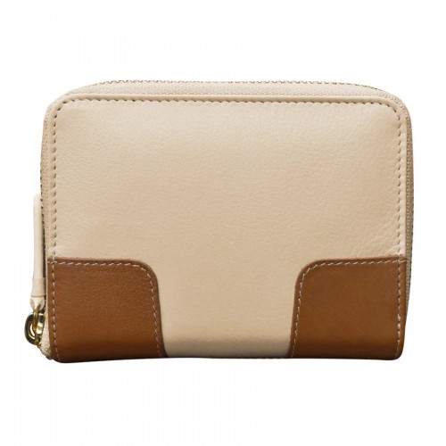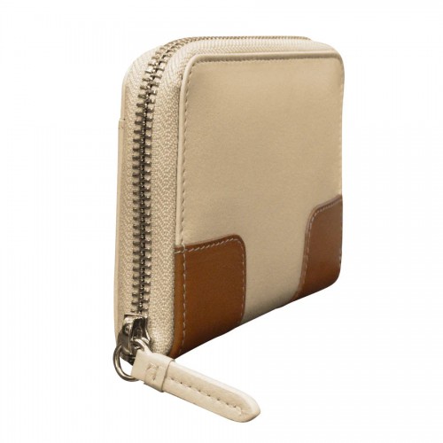 ILI New York RFID Leather Corner Detail Small Zip Wallet – Stone/Saddle