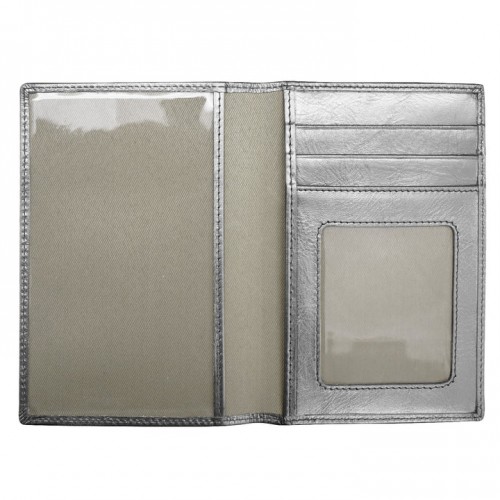 ILI New York RFID Leather Passport Wallet w/ID Window – Silver
