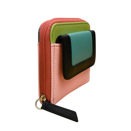 ILI New York RFID Leather Small Pocket Wallet – Peach Multi