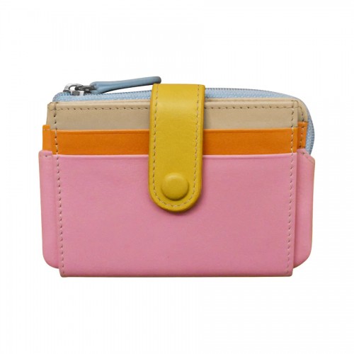 ILI New York RFID Leather Small Pocket Wallet – Peach Multi