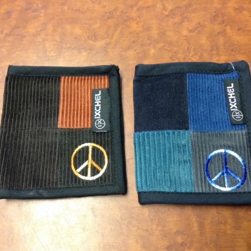 Corduroy Patchwork Large Keychain Peace Sign Coin Purse
