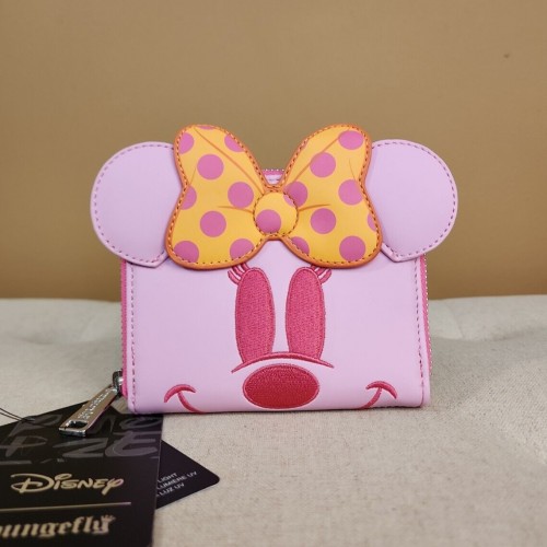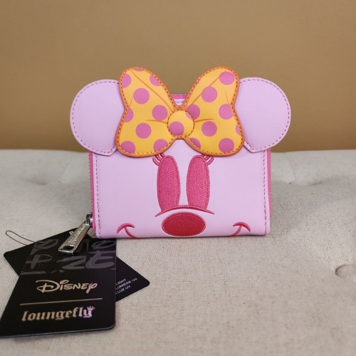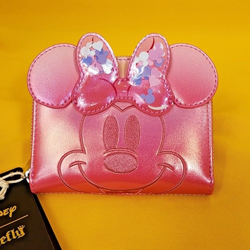 Disney Minnie Mouse Pink Iridecent Ears Bow Confetti Zip Wallet
