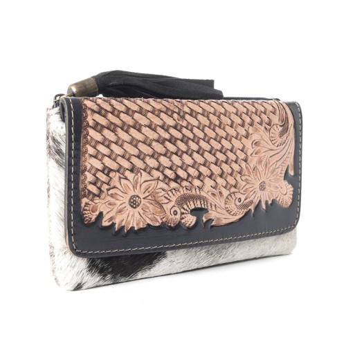 Sierra Scroll Handtooled Card Holder in Bronco Umber