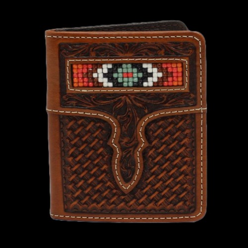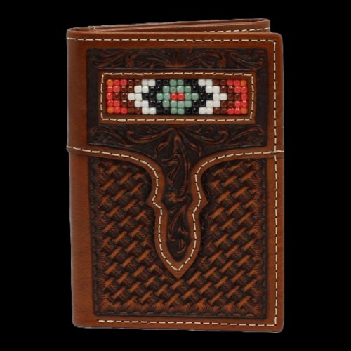 Nocona Men’s Beaded Basket Weave Trifold Leather Wallet N500022008