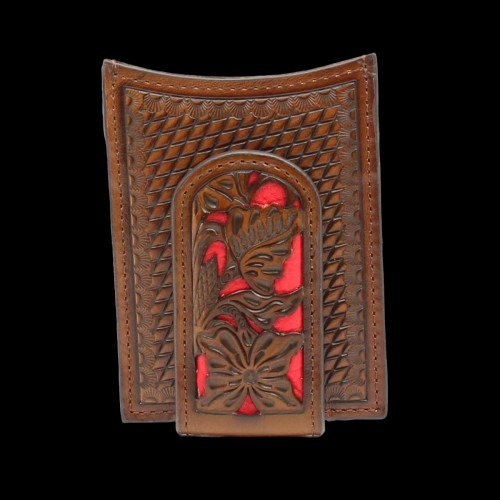 Nocona Men’s Western Red Floral Inlay Magnet Money Clip Wallet N5426504