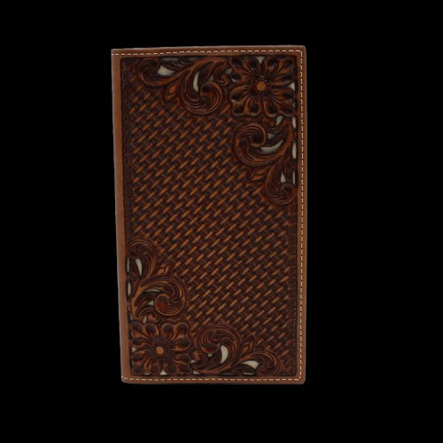 Nocona Western Men’s Rodeo Floral Tooled ID Brown Wallet N500014002
