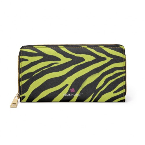 Yellow Zebra Print Zipper Wallet, Best Zebra Striped Animal Print Gold Color Zipper Wallet For Women