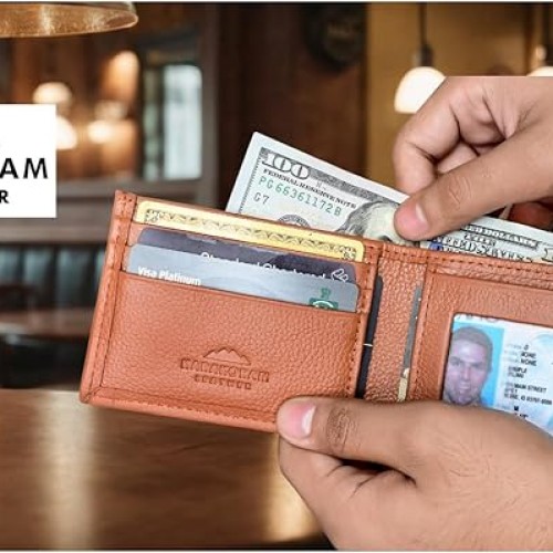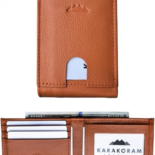 KARAKORAM LEATHER Artisan Made Premium Cowhide Leather Slim BiFold Wallet for Men | RFID Blocking Front Pocket Everyday Carry | Fits 12-14 Cards with 2 External Quick Access Slots (Sandstone Tan)