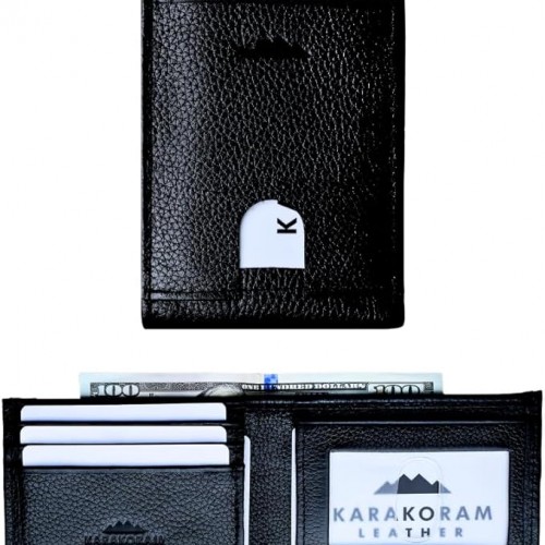 KARAKORAM LEATHER Artisan Made Premium Cowhide Leather Slim BiFold Wallet for Men | RFID Blocking Front Pocket Everyday Carry | Fits 12-14 Cards with 2 External Quick Access Slots (Midnight Black)