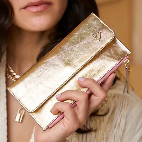 Patent of Heart Kate Slim Leather Card Holder – Metallic Green
