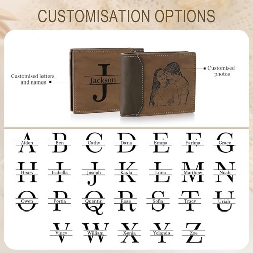Personalized Photo & Name Initials Wallet for Men, Customized Gifts for Husband BF Dad Son Family Groomsmen Friend, Birthday Anniversary Father’s Day Christmas Gifts