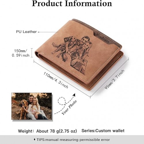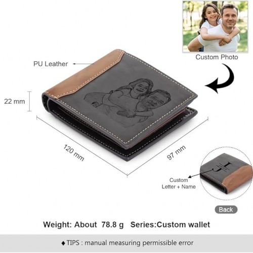 Personalized Photo Wallet for Men – Custom Leather Wallet with Name, Gift for Dad, Husband, Grandpa, Father’s Day, Birthday, Anniversary, Christmas Gift (Style G)