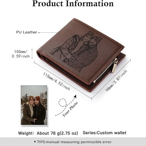 Personalized Photo Wallet for Men – Custom Leather Wallet with Name, Gift for Dad, Husband, Grandpa, Father’s Day, Birthday, Anniversary, Christmas Gift (Style B)