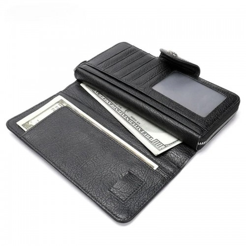 Leather long wallet men’s top layer cowhide black business wallet horizontal square hand-held bag