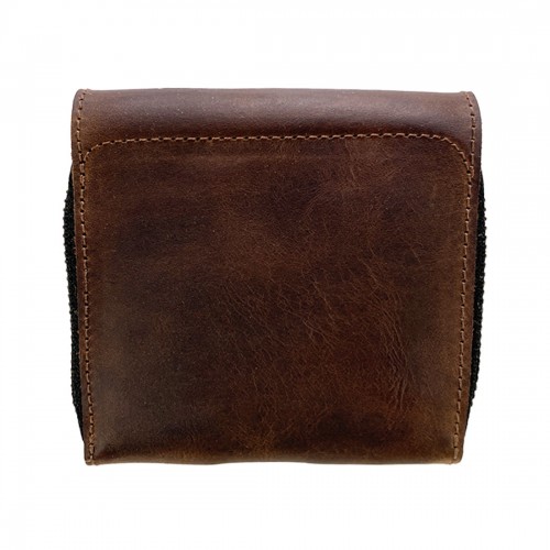 Trifold Wallet With Center Flip ID Pocket | Toffee Distressed Leather