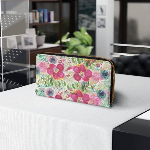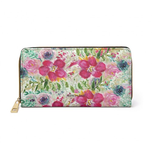 Mixed Floral Rose Zipper Wallet, Floral Elegant Long Compact Designer Premium Quality Women’s Wallet