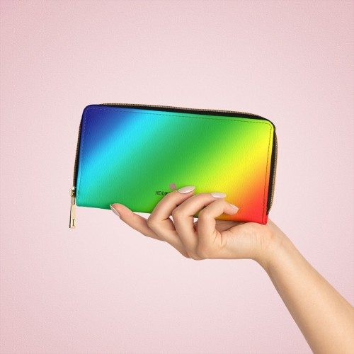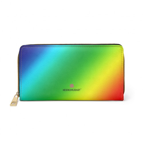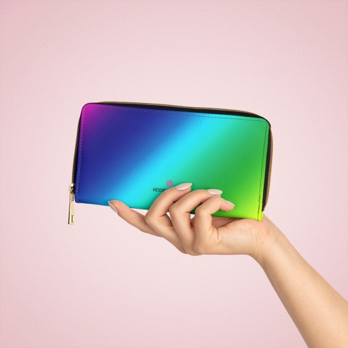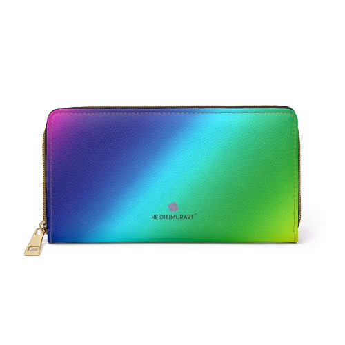 Rainbow Ombre Women’s Zipper Wallet, Colorful Long Compact Designer Premium Quality Women’s Wallet