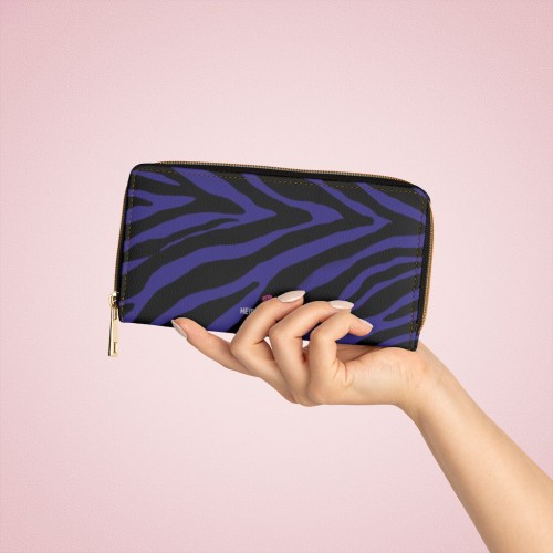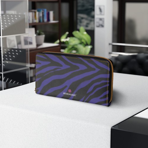 Purple Zebra Print Zipper Wallet, Best Zebra Striped Animal Print Gold Color Zipper Wallet For Women