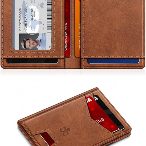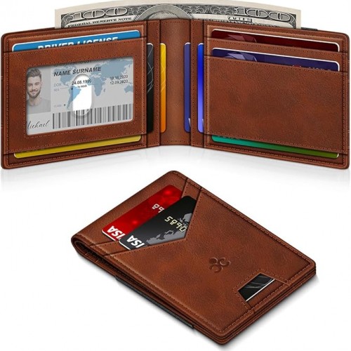 Wallet for Men Slim Leather Wallets for 9-13 Cards, RFID Blocking Thin Card Holder Wallet with ID Window & Stretchable Cash Slot, Minimalist Bifold Small Wallet for Front Pocket, Birthday Gift for Men