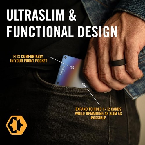 Ridge Wallet for Men – Slim Minimalist Compact Wallet and Card Holder, RFID Protected Front Pocket Wallets for Men with Integrated Cash Strap (Forged Ember)