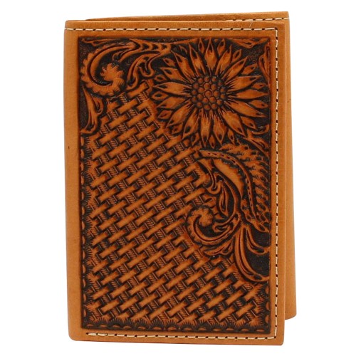 Myra Starweave Dusk Handtooled Leather Wallet for Men in Aged Sienna