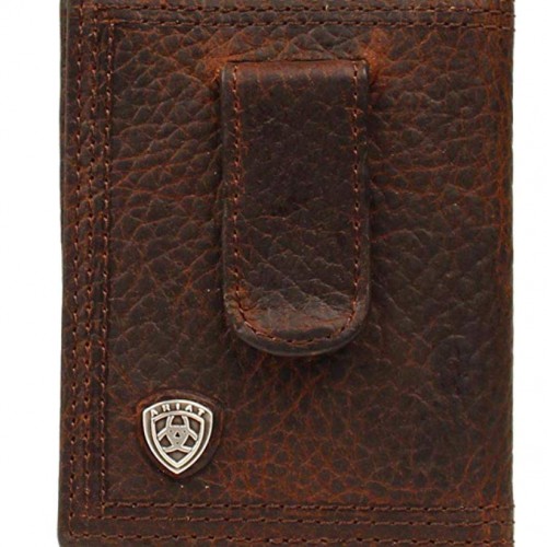 This classic 3D trifold rodeo wallet by M&F Western Products is genuine leather. Crazy horse leather with triple stitch edge. Multiple card and cash slots, multiple checkbook holders, pen holder and ID window on the inside.