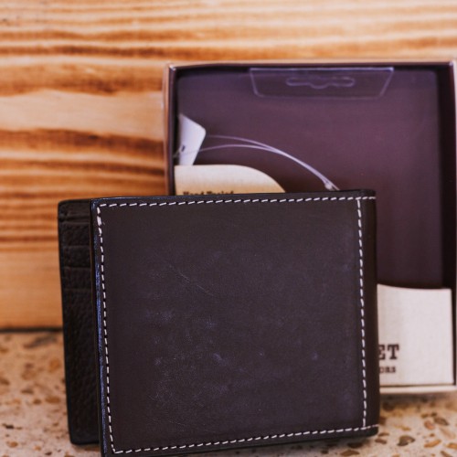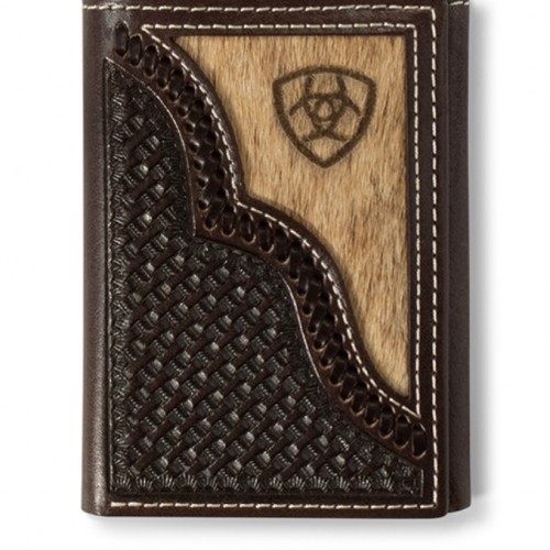 Decorative and stylish men’s 3D bifold wallet. It is made of genuine leather with a tan and maroon southwest pattern that is laced on the front. Multiple card slots and ID window.