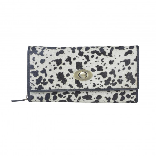 This wallet comes with a light brown coloured paired with a white and black patterned half. This looks like a fun to carry casual look.
