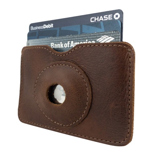- STAY ON TRACK: Keep your personal items tracked with this great new technology paired with a durable, full grain leather, handmade Card Holder for easy storage. This Horizontal Card Holder features the perfect sized pocket to store your AirTag and has space for your debit, credit, and ID cards. This slim card holder can also be slipped into your wallet, clutch, bag, or purse to keep everything on track. This special card holder will also help keep your AirTag protected and safe wherever you go.