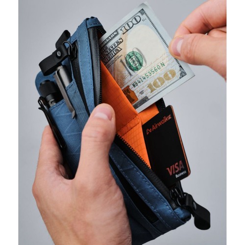 Rugged and compact, this clutch comes in weatherproof sailcloth fabric. Practical and functional, it allows you to keep your essentials always at hand.