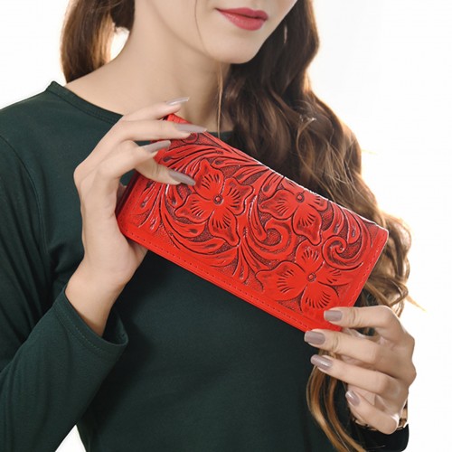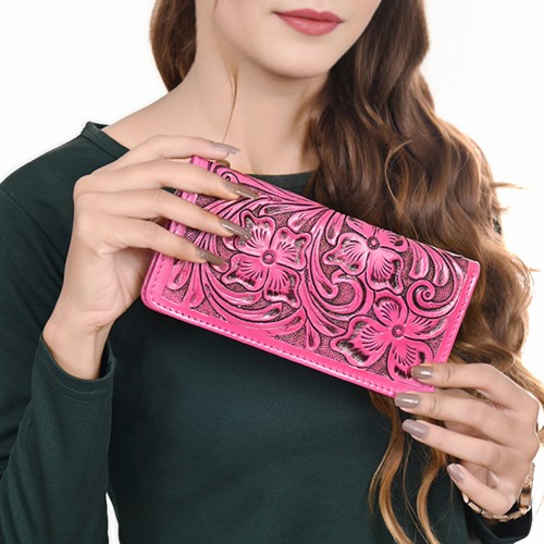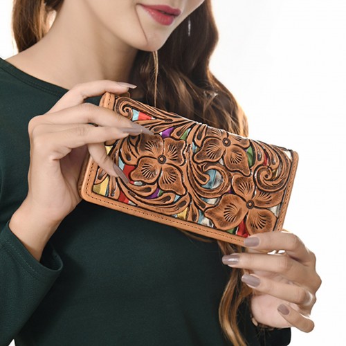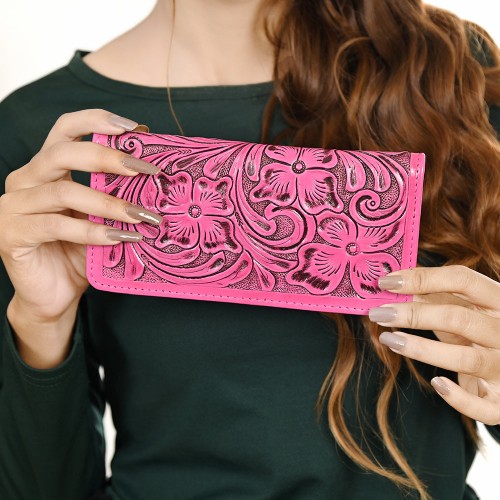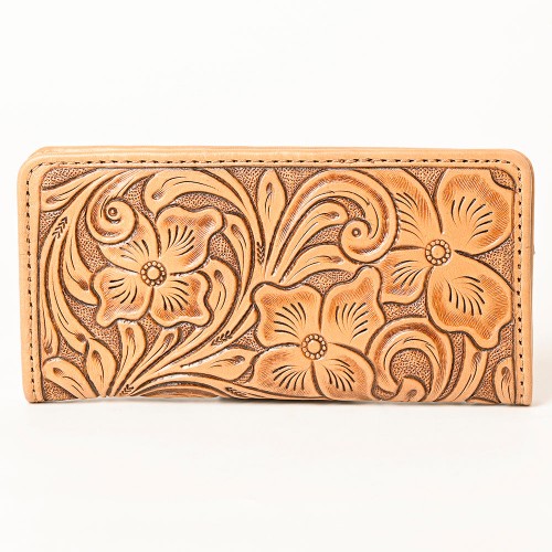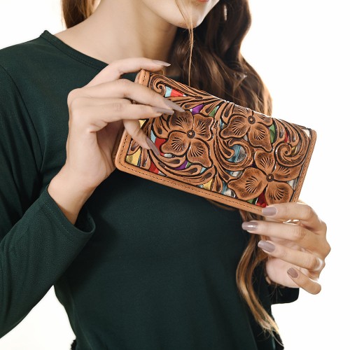 American Darling Hand-Tooled Genuine Leather Wallet Handbag – Floral Carved Western Women’s Wallet with Card Slots & Bill Compartments